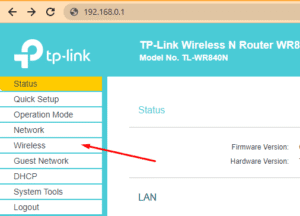 Setelah login, pilih menu Wireless pada dashboard router untuk melanjutkan ke pengaturan Wi-Fi.